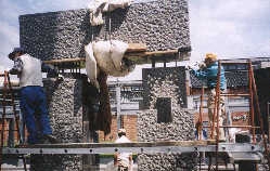 1997年4月15日から5月7日まで公開制作。元々現地製作をしたいという市民芸術村関係者からの要望の元での今回のコンペでしたので、現地での公開製作を前提にした作品を提案しています。この作品は、多くの人で作るということで、誰でも簡単に理解、製作できるように、丸、三角、四角などの幾何形体の組み合わせでできています。定規とコンパスがあれば簡単に形出しができます。大型機械での加工も容易なので合理性も高くなります。