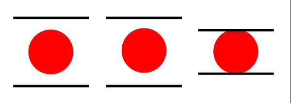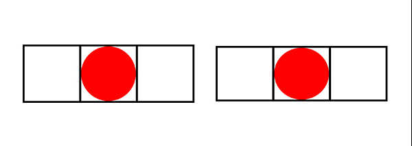 2-1.横線に挟まれた円は少し下がって見えます。感覚的な補正が必要になります。